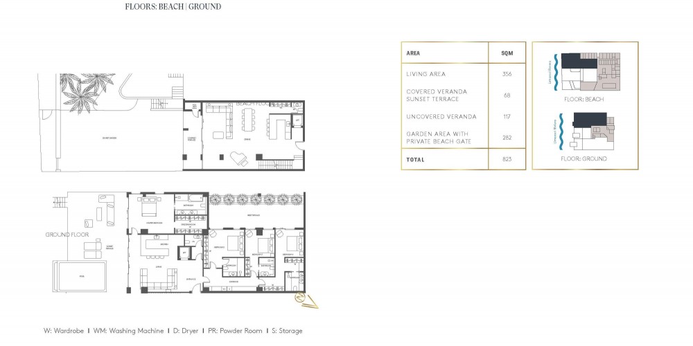 Garden Collection: Located on the beach, ground floor and includes 1 single floor and 2 duplex apartments of 3 and 4 bedrooms.