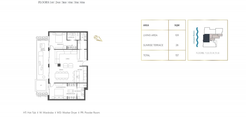 Variety of layouts are available for 1, 2 and 3 bedroom apartments, all with open living areas, en-suite bedrooms, large terraces with a private hot tub and highly desirable beach and sea view. Exclusive access to Wellness Club (indoor swimming pool, gym, spa) is included.