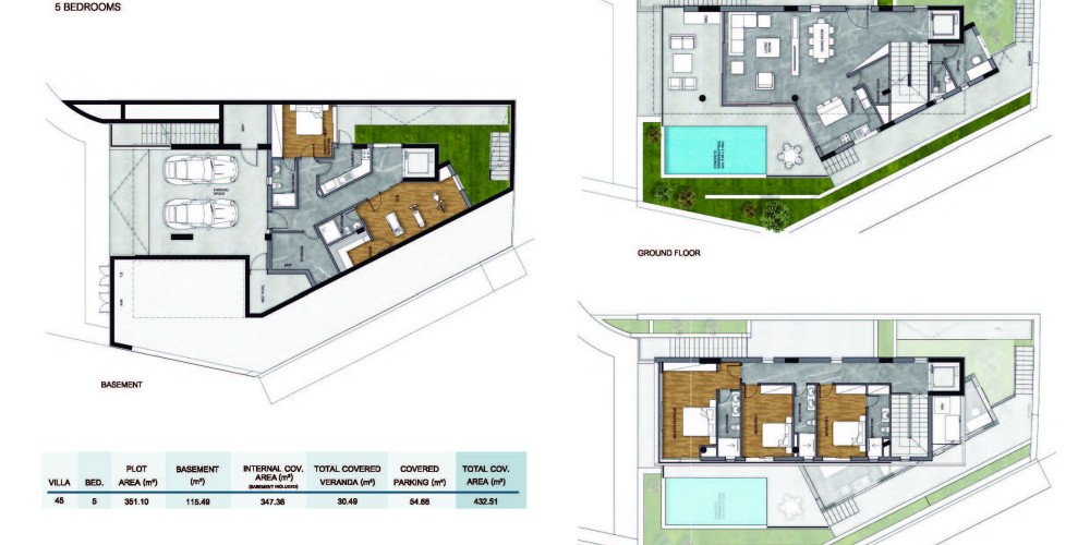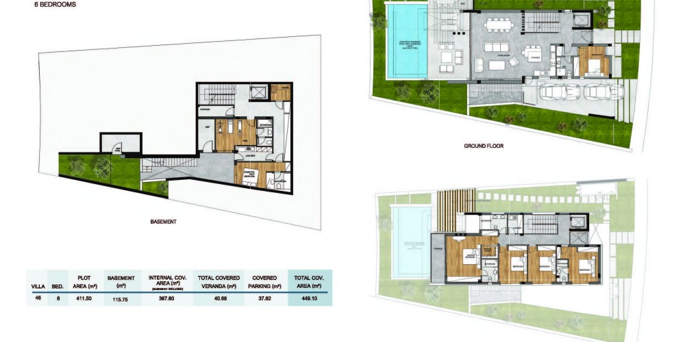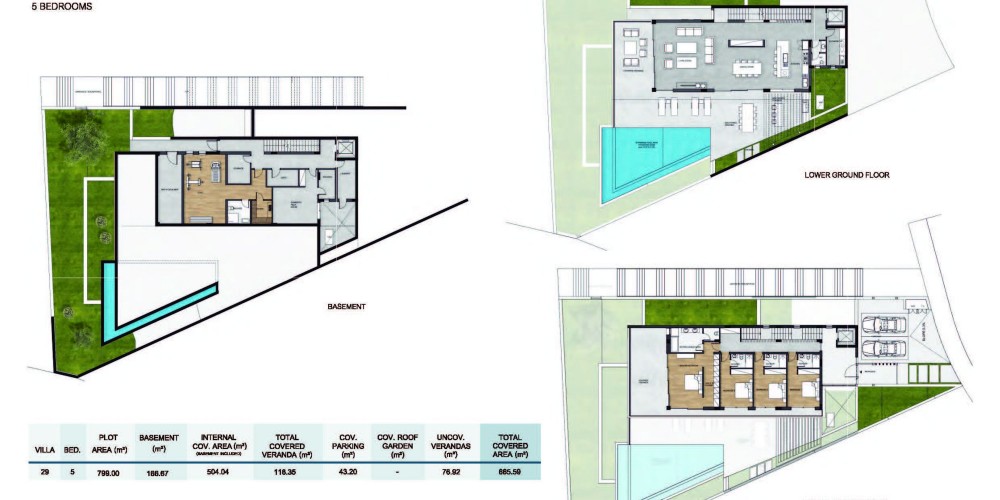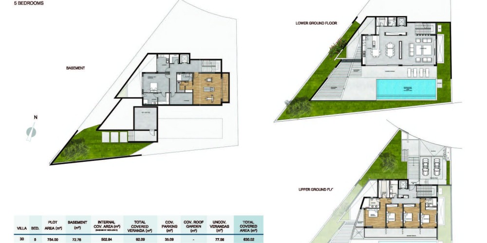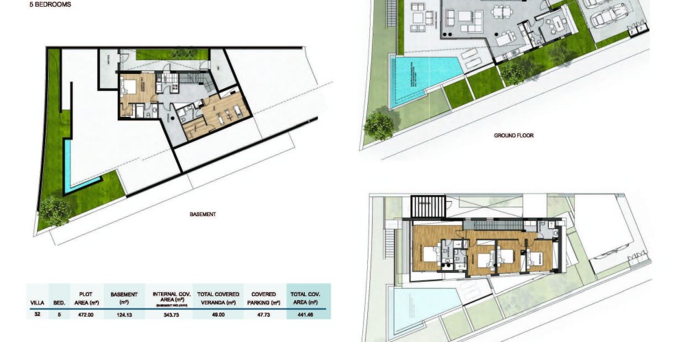 The complex will have unobstructed views of Limassol, contemporary and functional design. All villas come with their own private swimming pool, large indoor and outdoor spaces, covered verandas and the majority have basements. Materials such as concrete, local stone and wood have been used in the design of the houses.