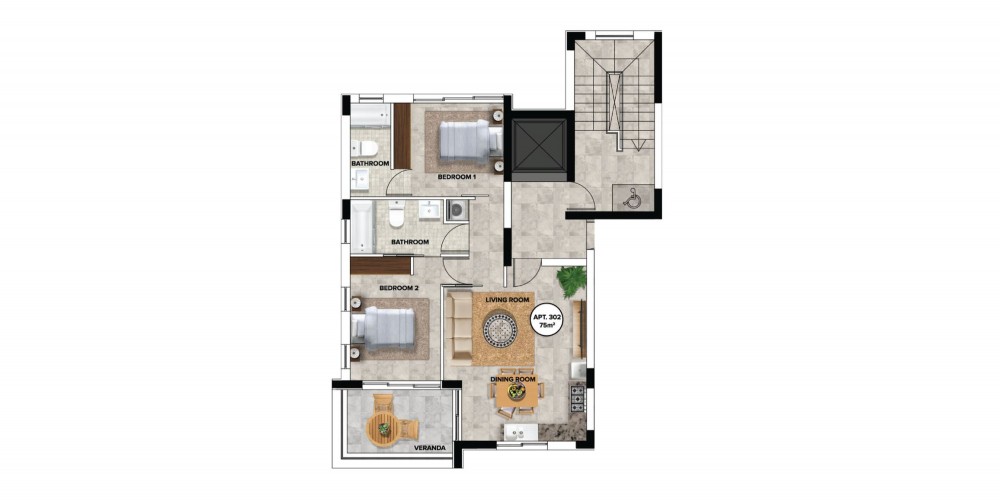 The project is located just a few kilometres from a sandy beach Lady’s Mile. It is in a quiet neighborhood, close to the stores, restaurants and supermarkets. The building’s location also allows easy access to the highway.