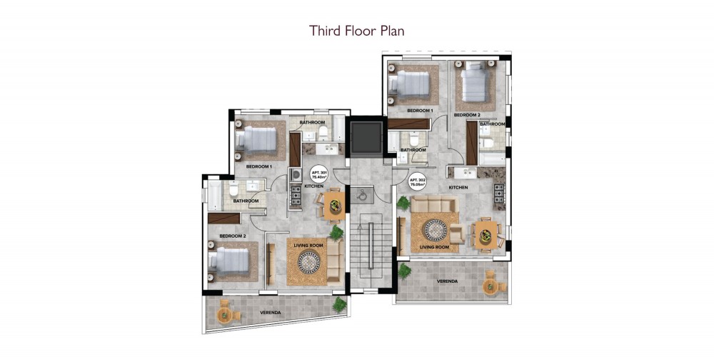 The project is a three-storey building situated in the center of Limassol and consists of six spacious 2-bedroom apartments, two on each floor.