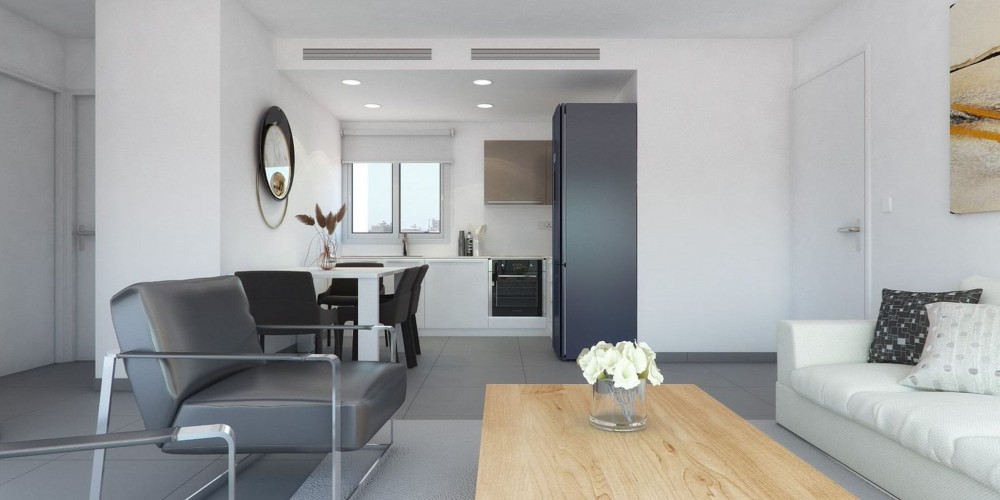 The space optimized layout in the apartments has a very generous feel, with an open-plan kitchen and living area, and the balcony for relaxation. Having a hallway that leads to the bedroom and bathroom, provides more privacy to the residents of the apartments.