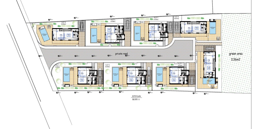 The villas have a warm Mediterranean style with wood detailing on the exterior. Inside, they are spacious, elegant, and finished with VRV cooling systems and underfloor heating, keeping the residents comfortable throughout the year.