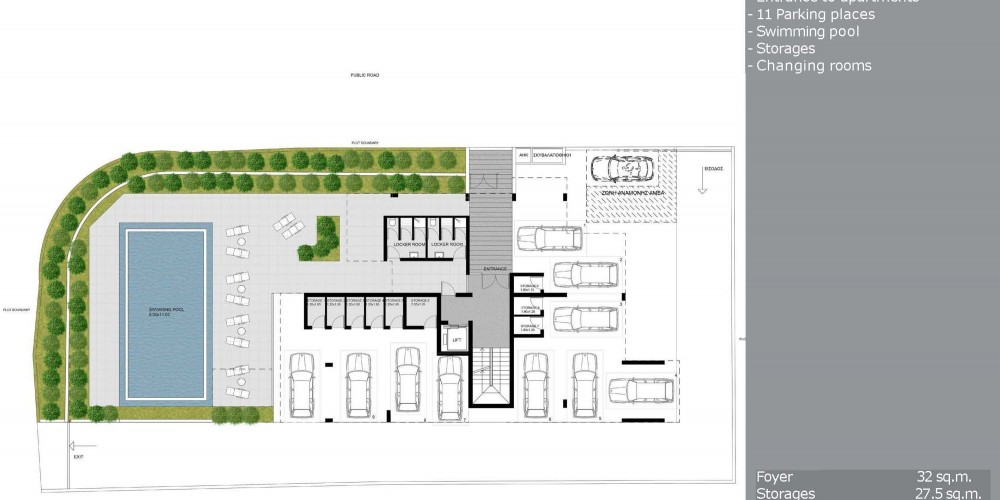 Storage units and secure parking area are provided for all residents. The residents will be able to enjoy a common swimming pool with the sunbathing area.