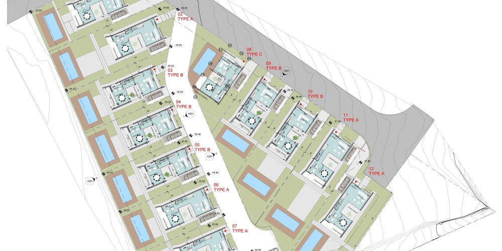The complex of 12 villas is located in Chloraka, just 850 meters from the beach and 5 star hotels. The villas consist of 3 bedrooms and will have the private pools. The daily amenities are just a short distance from the complex. Roof top, underfloor heating and VRV AC system are available at extra cost.