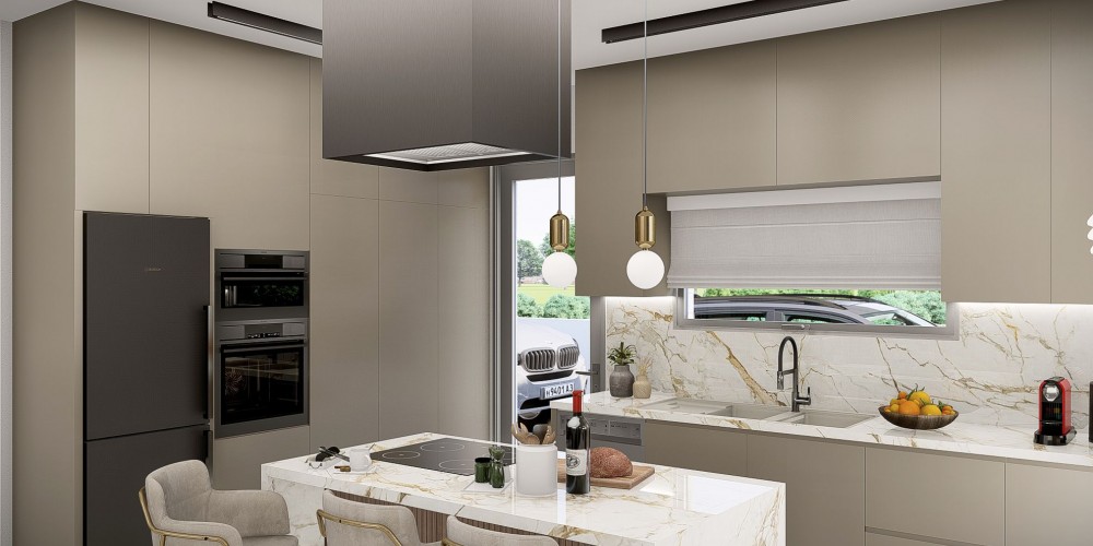 The design of the villas is a combination of concrete and stone walls coating on the exterior, while the technical specifications assure quality finishes with the option to select ceramic tiles, woodworking and sanitary ware.