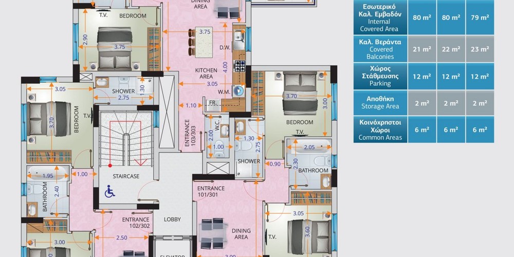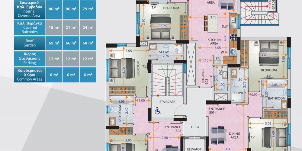 The fifth floor of the project will have the apartments with two bedrooms and three bathrooms each with spacious covered and uncovered balconies.