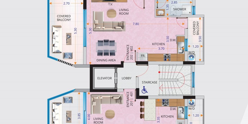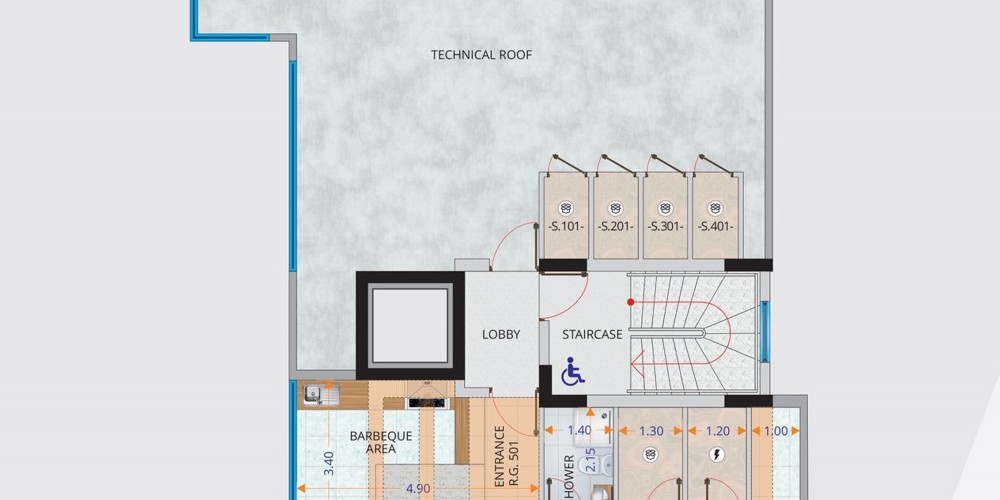 The project will have 2 apartment per floor: one apartment with 1 bedroom and one with 2 bedrooms, all with spacious and contemporary living areas. The fifth floor will have the whole floor apartment with 3 bedrooms and 3 bathrooms as well as private roof garden...