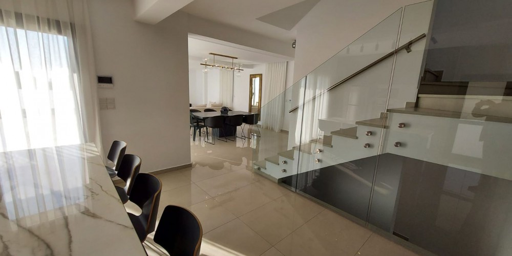 The house is built with quality materials and has a modern style. It consists of a basement, ground floor, first floor and a roof garden. From all the bedrooms on the first floor and from the roof garden the villa enjoys the views of the city of Limassol as well as the sea.