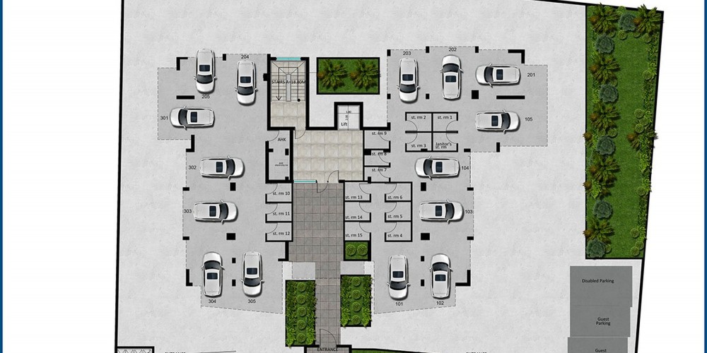 It consists of 4 floors including a ground floor with covered parking, 15 apartments of 1 and 2 bedrooms with large covered verandas.