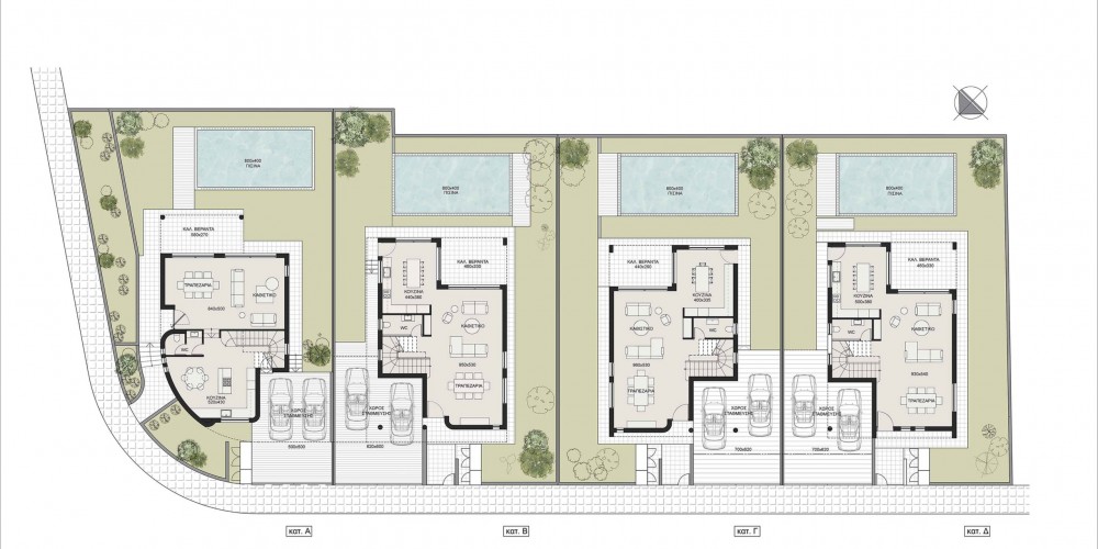 The villas in this project are designed with a contemporary look and are located in a prime location of Agios Athanasios, Limassol. The ground floor has a reception area, open plan modern kitchen and living room, guest WC, covered terraces, swimming pool, and large gardens whereas on the first floor there are four spacious bedrooms, some of them wit...
