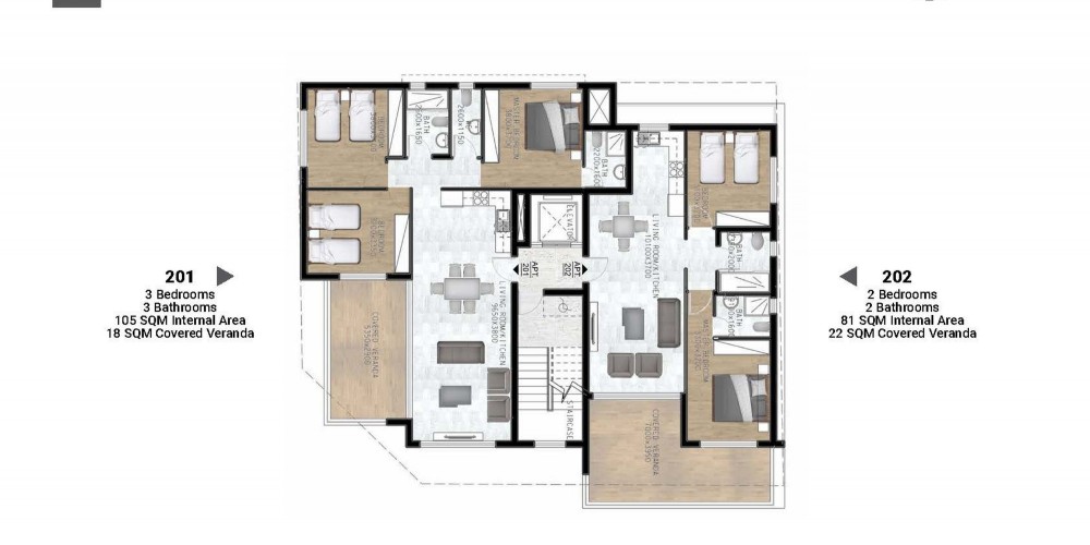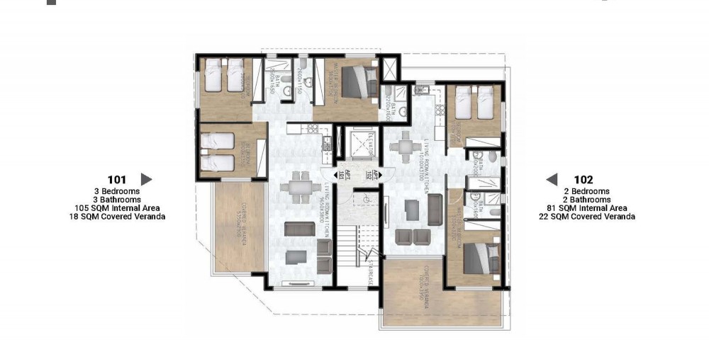 The project is near the public services and just 500 meters from Larnaca Salt Lake and just 200 meters from the biggest park in Larnaca Patticheio Park.