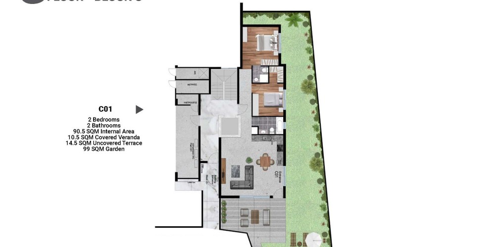 The project will consist of 3 blocks including 1, 2 and 3 bedroom apartments and penthouses with roof terraces.