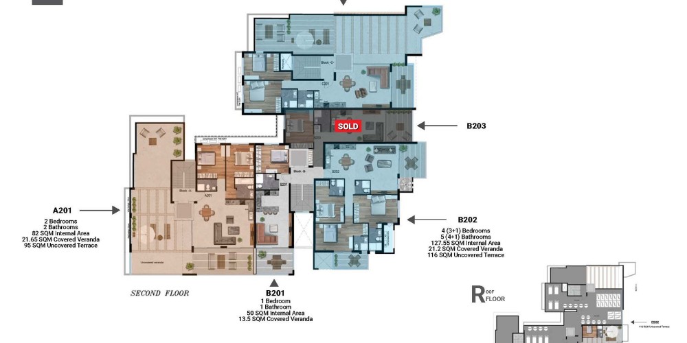 - Penthouses with roof terraces