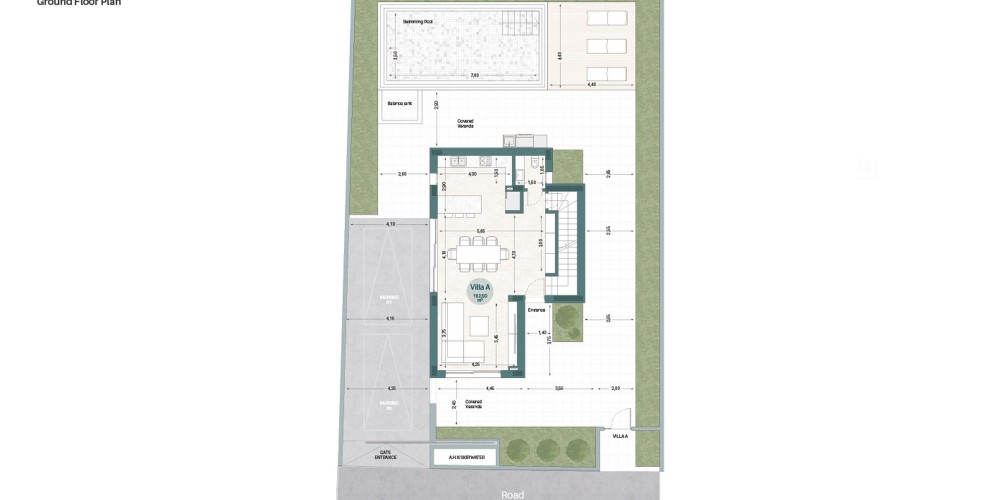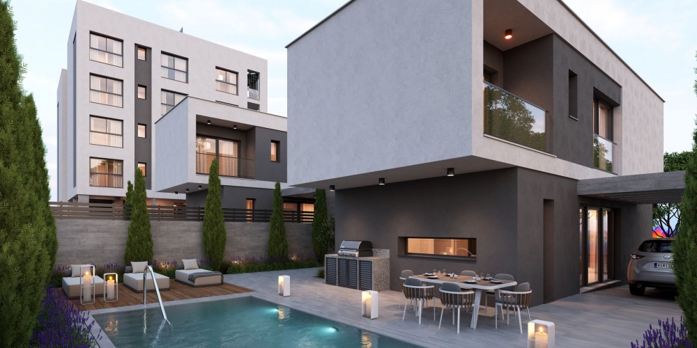The villas will have their own backyard with a private pool, parking space for 2 cars and enough storage space.