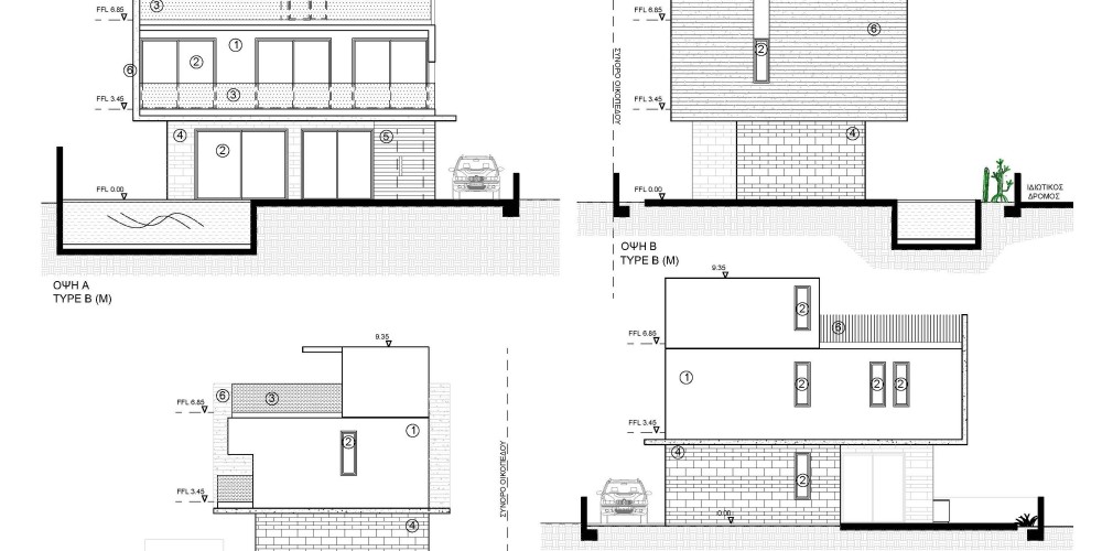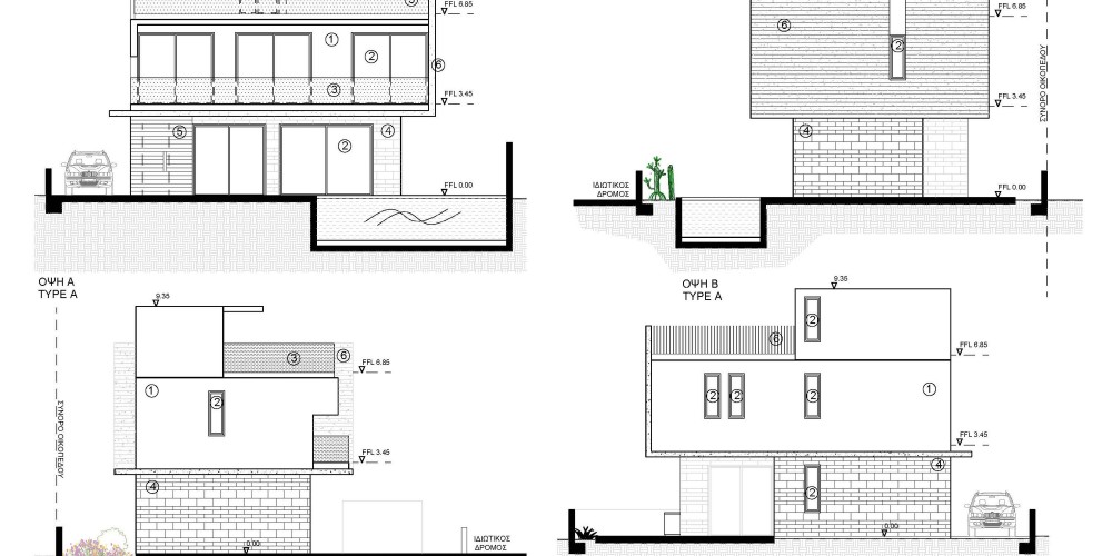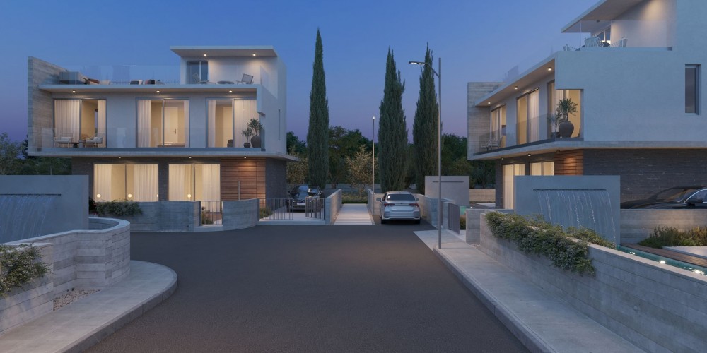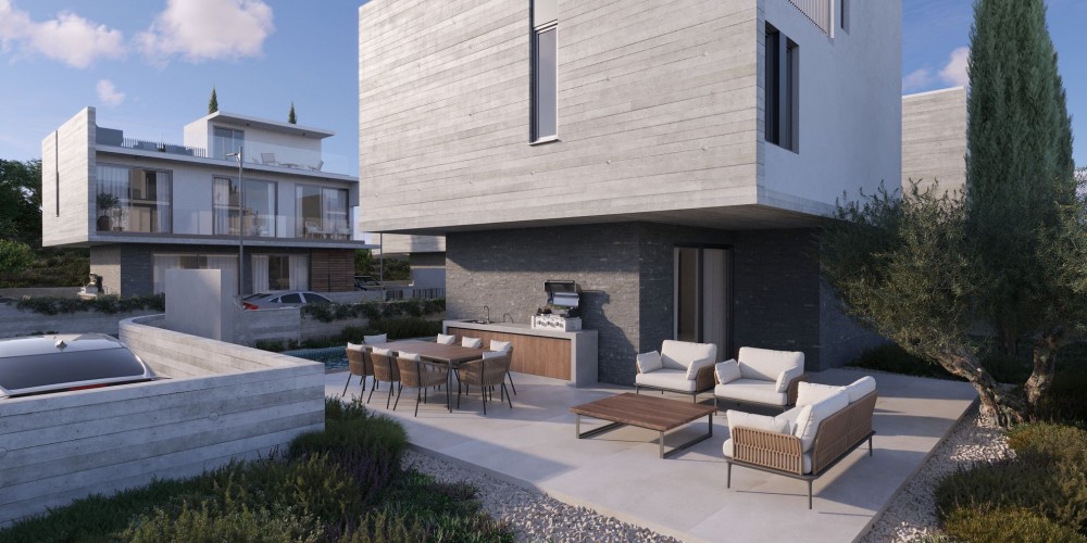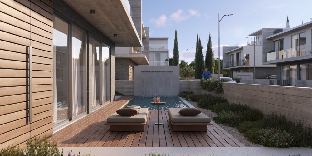 The villas have contemporary design and are set on a quiet road in Geroskipou. The 3 bedroom 3 bathroom villas will catch your eye with their French windows that let in a lot of daylight. Textured exterior walls, a garden patio and the wooden sunbathing deck surrounding the private pool define the modern, sophisticated style of these properties.