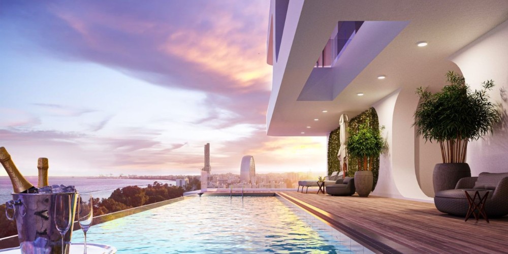 The development is a unique premium skyscraper that combines luxury apartments and a penthouse with gardens, offices and shops.