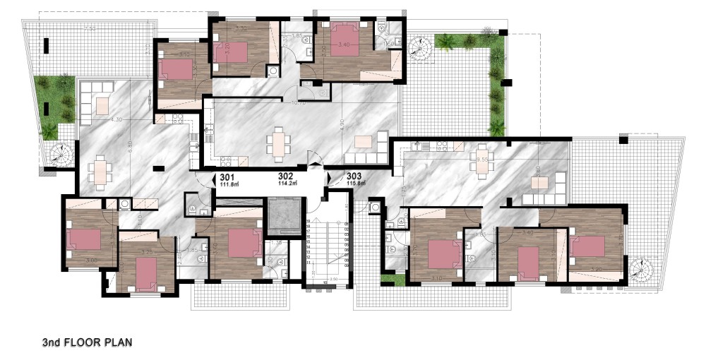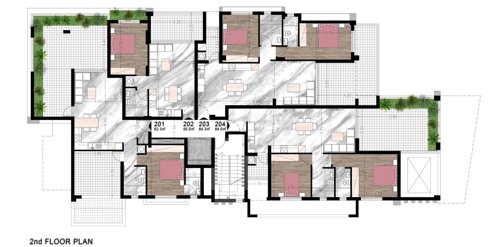 This residential building located in prime location near the city center, offers a selection of 1 and 2 bedroom apartments along 3-bedroom penthouses featuring private roof gardens.