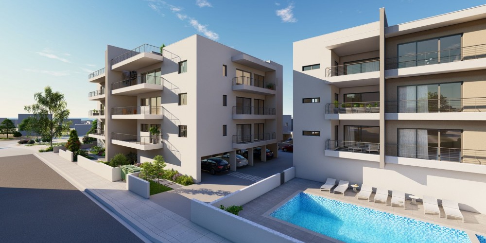 This modern residential complex is located in the city center of Paphos. It consists of two blocks of 2, 3 and 4 bedroom apartments with communal swimming pools and a total of 5 3 bedroom villas with their own private swimming pools. Other than its contemporary and functional design, the other major advantage of project is its proximity to all city centre amenities such as the Mall, a number of restaurants and bars, a few minutes’ drive to the beach and two upcoming universities that will open up in Paphos.