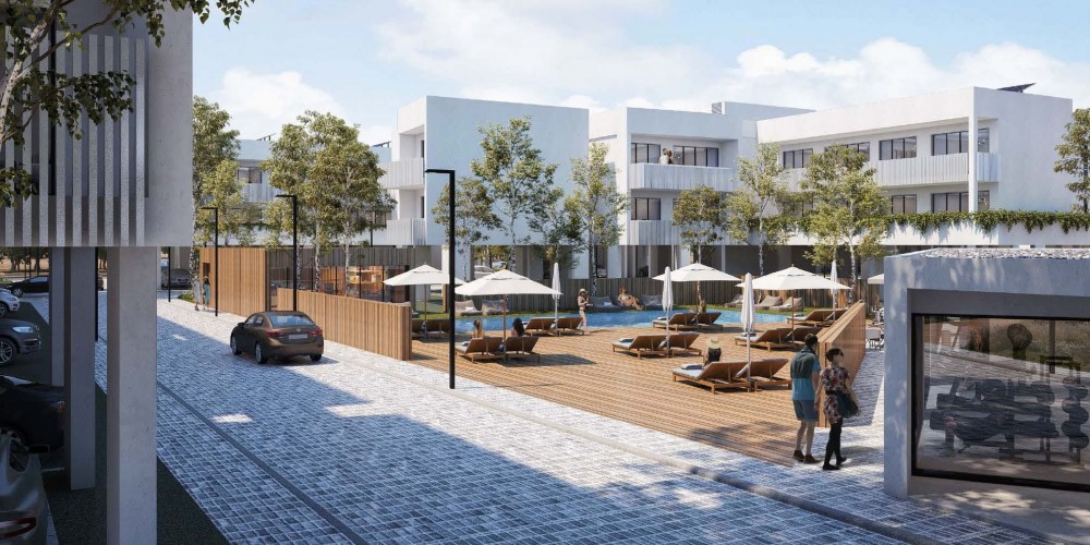 The project will consist of studio apartments and apartments with 1 and 2 bedrooms. The resort will have such facilities as bar restaurant, cigar lounge, spa, tennis/basket court, gym, a swimming pool, outdoor playground and the outdoor sitting area. Everything for the needs of its residents.