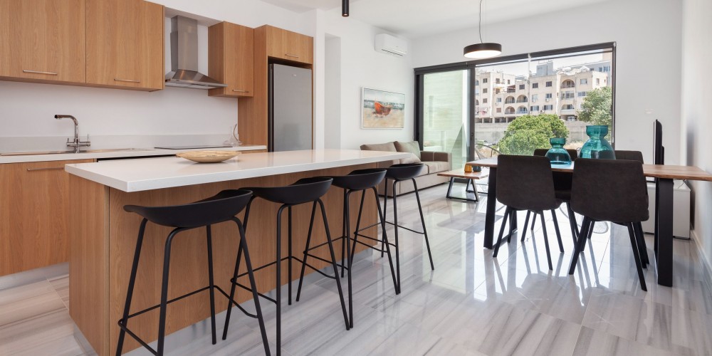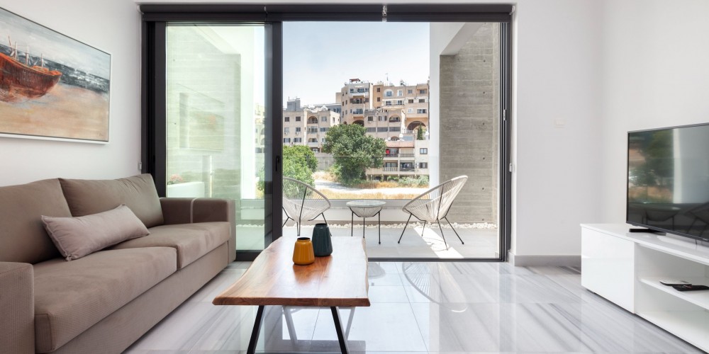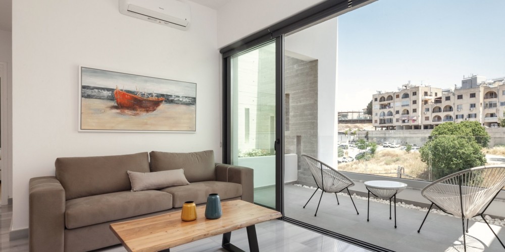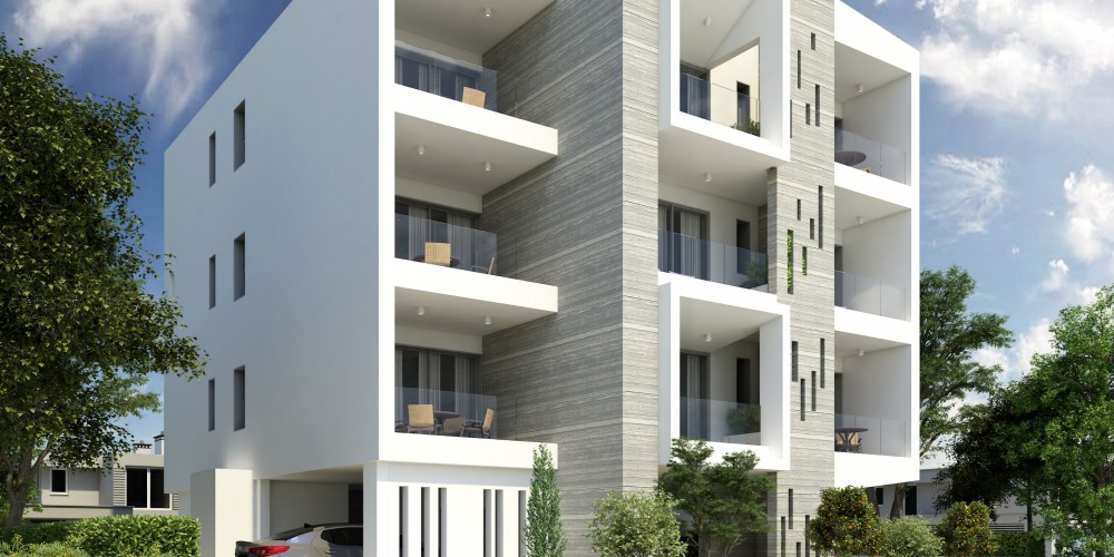 This modern residential complex is located close to all the infrastructure of Paphos town. It is a four storey building with only two apartments on each floor. The design of the 1 and 2 bedroom apartments includes a lounge with TV, an ultra modern kitchen equipped with the latest appliances and spacious living areas opening onto a private balcony.