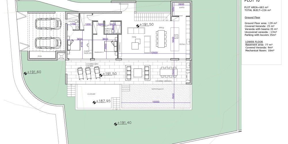 Prices include swimming pool, 10.1 kW photovoltaic system with solar panels, VRV for cooling, underfloor heating, alarm system, electric gate/charger. Furniture package from €50.000 + VAT.