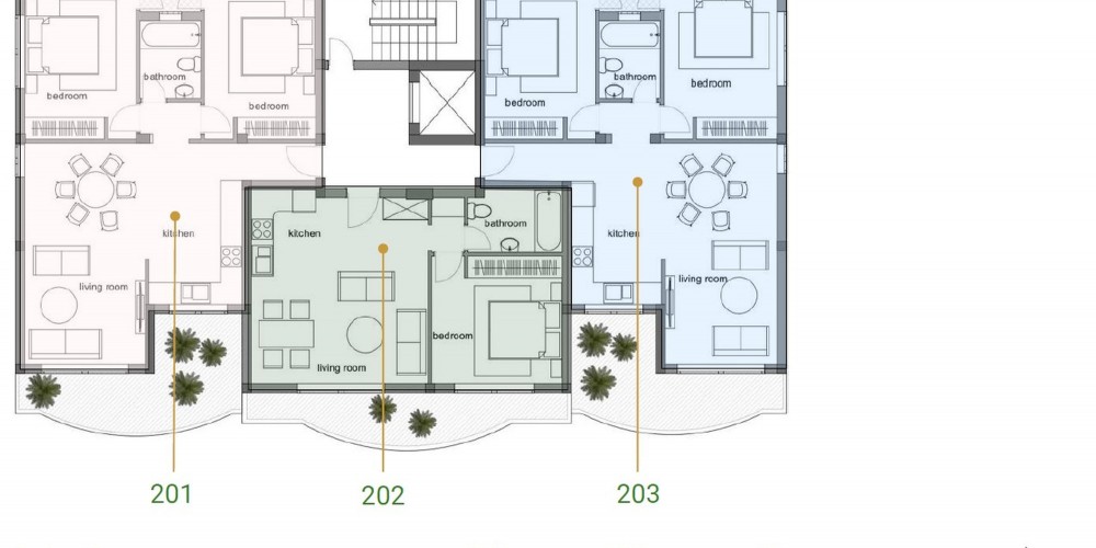 The one and two bedroom apartments vary in size, allowing the clients to choose from. The small number of residences in each building (A & B) creates a sense of community among residents, as well as gives privacy and security.