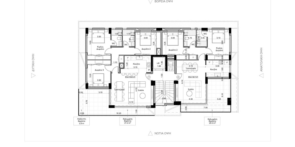 The residential building is located in one of the quietest areas of Deryneia, next to the municipal amphitheatre and overlooking Famagusta. It has an easy access to all the services and is also just a few minutes away from Paralimni.