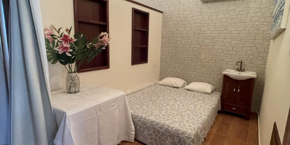 Stepping outdoors, one will be greeted by a lush garden. The covered veranda invites you to unwind and enjoy the beauty of the surroundings.