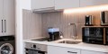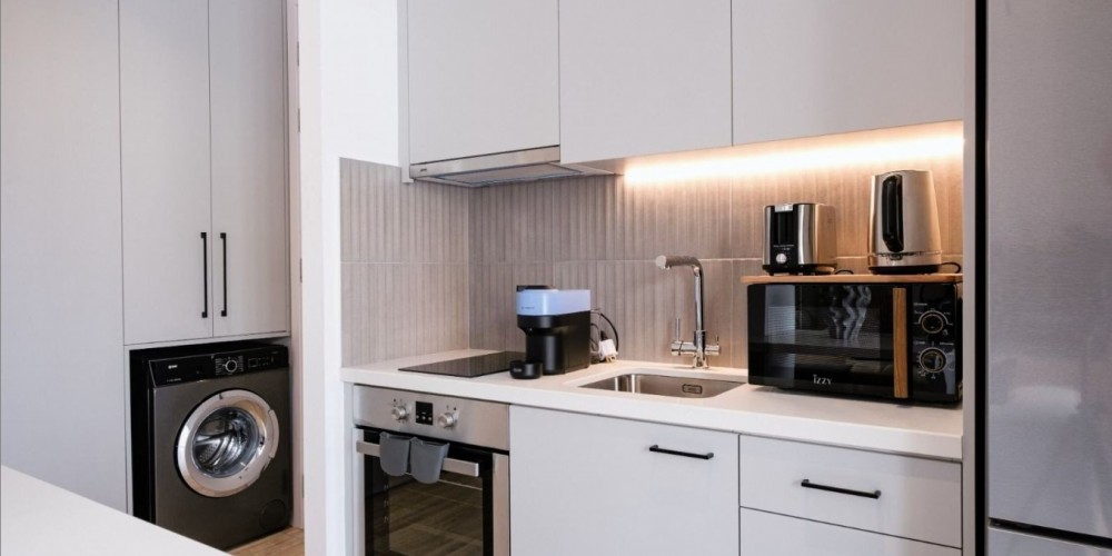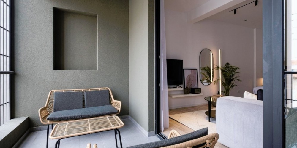 The contemporary design features sleek interiors, roof gardens, and balconies with stunning views of the city and sea.