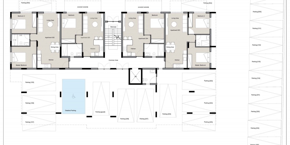 A modern 3 story apartment building in central Paphos. It comprises of 21 apartment with 1 and 2 bedrooms and penthouses.