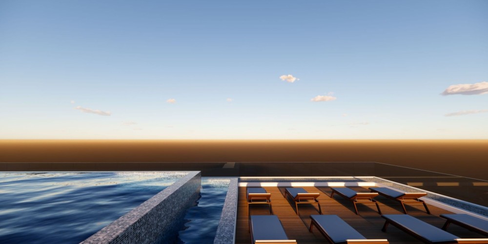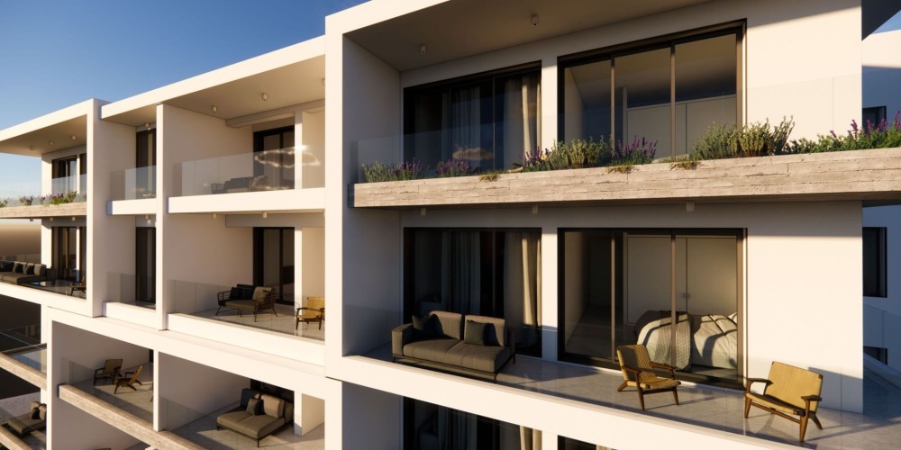 Each apartment comes with spacious balconies, providing sunset sea views.