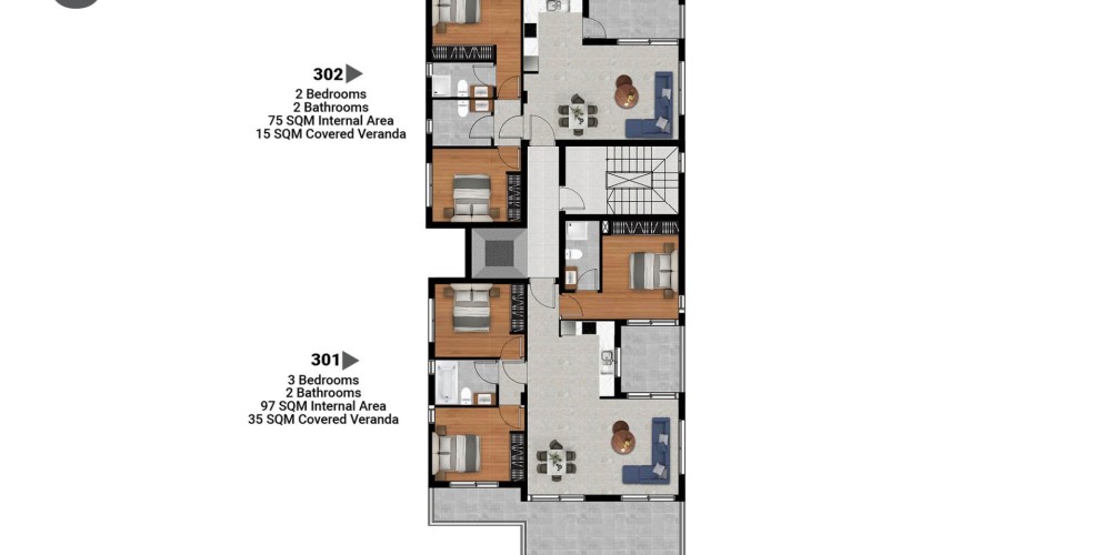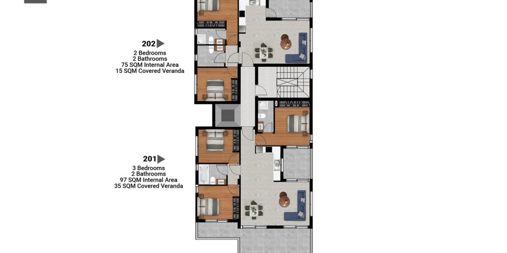 2 and 3 bedroom apartments, Penthouses with roof terraces.
