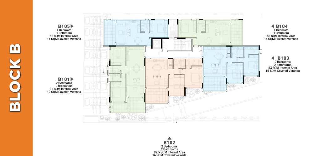 The complex combines apartments and villas and includes a swimming pool and a kids playground.