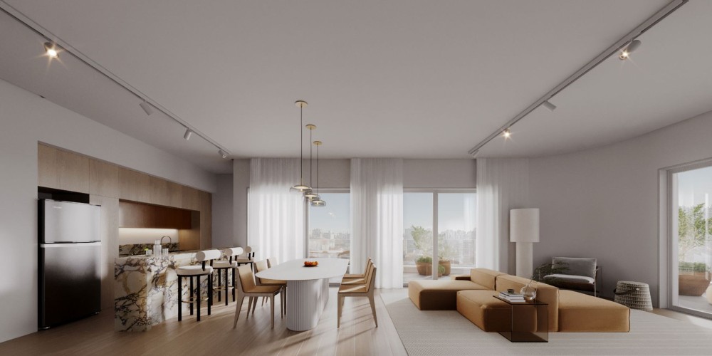 The Residence includes spacious apartments with large interior spaces, bedrooms, balconies, parking lot...