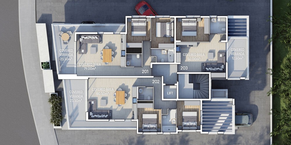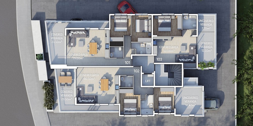 Nestled in vibrant Limassol city centre, the project offers a blend of modern luxury and natural tranquility. In close proximity to the highway and the church, this prime location is complemented by a scenic green area opposite the building.
