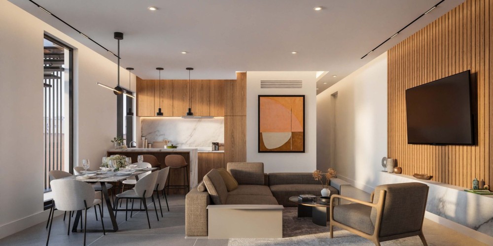 Created with careful consideration for modern and functional living, the project presents 6 three bedroom apartments, of which two penthouses with roof gardens, perfect for those embracing a sun seeking urban lifestyle.