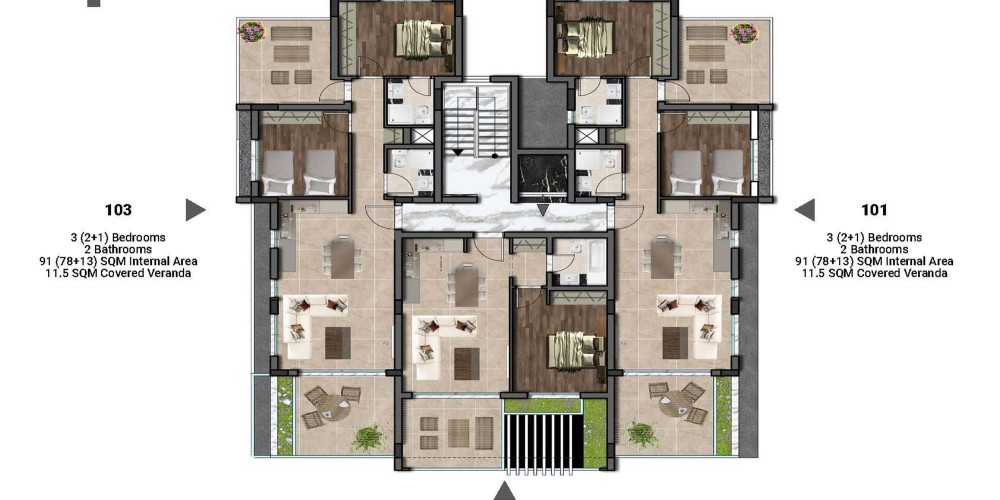 New residential building in the area of Aradippou, Larnaca. This residential project is a 3 floor building composed of spacious apartments and penthouse apartments with large terraces.