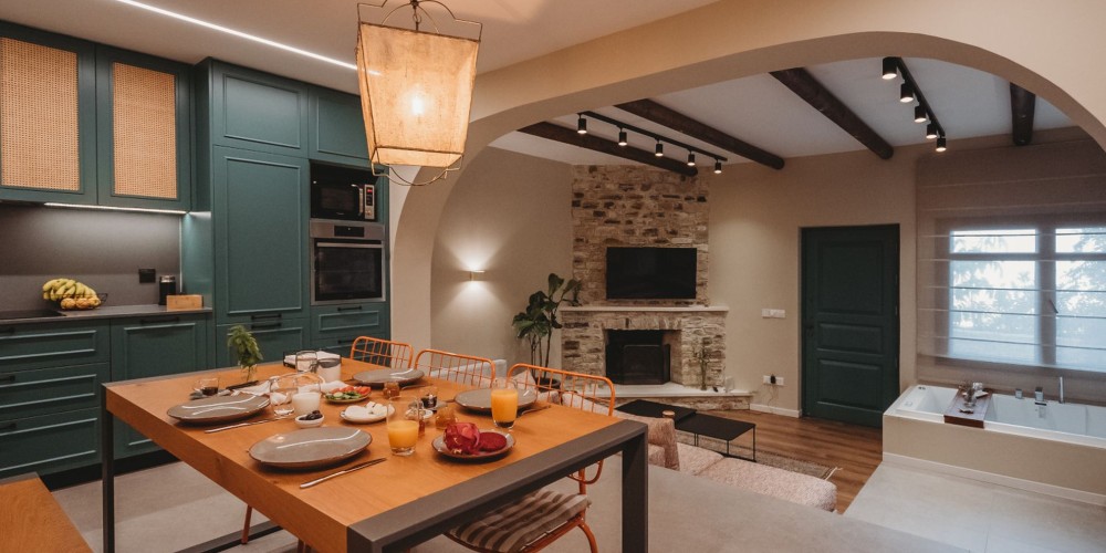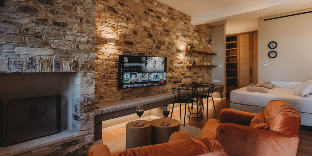 The 3 luxurious guest houses found within the premises, manage to combine absolute privacy for all your guests. All three units offer separate garden areas and are equipped with fire places, beautiful kitchens and dining areas, as well as modern bathrooms and jacuzzies.