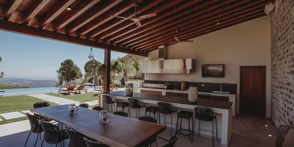 This 9 bedroom villa is unique, as it manages to combine 6 large bedrooms in the main house, as well as 3 independent luxurious suites. This modern hotel like living space offers all the high-end amenities whilst combining an agricultural experience from its private mountains that produces Mediterranean fruits and olives.