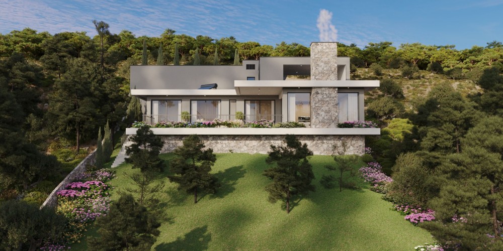 This spacious mansion sits on a huge plot, featuring all the convenient and modern facilities. Enjoy the serene environment along with a cozy fireplace area perfect for mountain evenings. An amazing and sustainable living in a picturesque mountain setting!