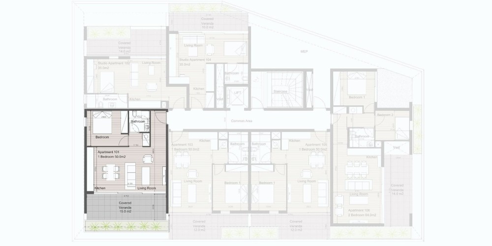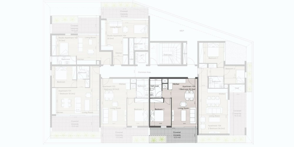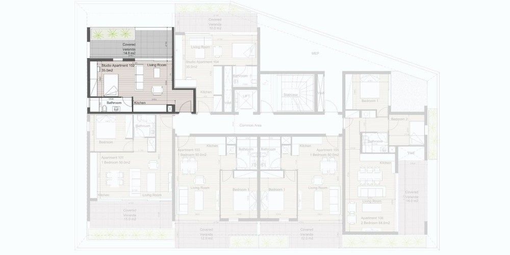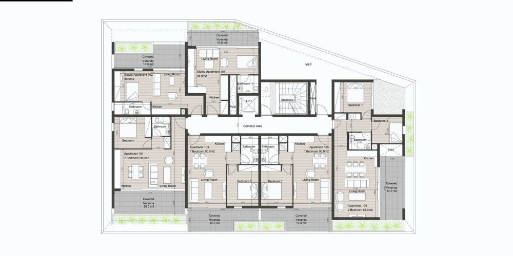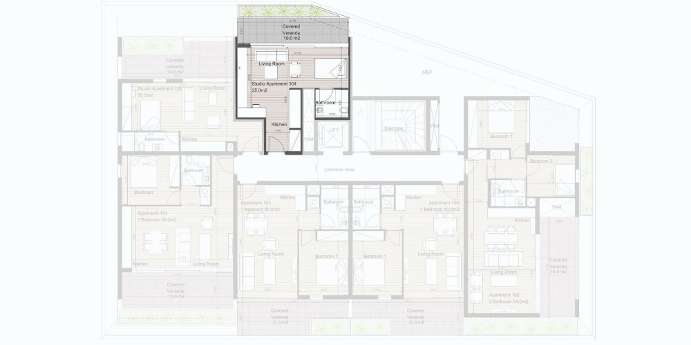 This residential development consisting of 16 apartments, offers a diverse selection of studios, 1 and 2 bedroom apartments and penthouses featuring beautiful rooftop gardens.