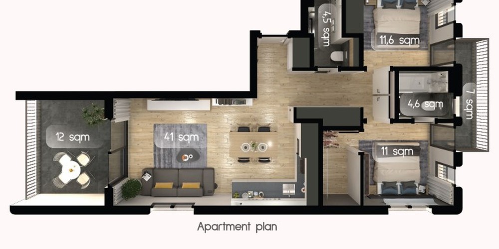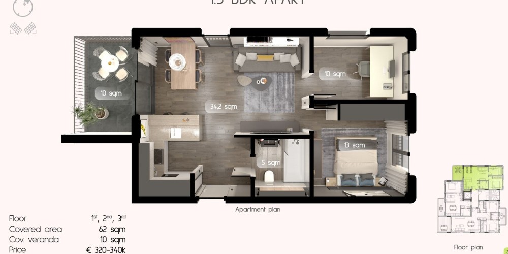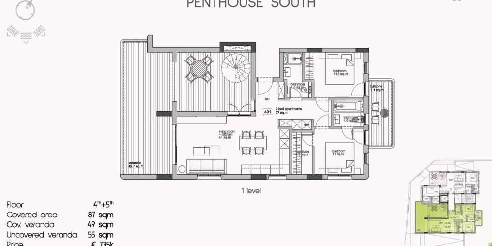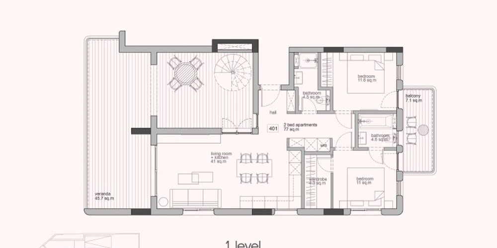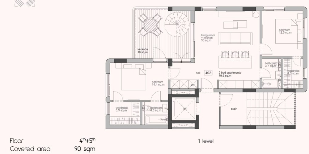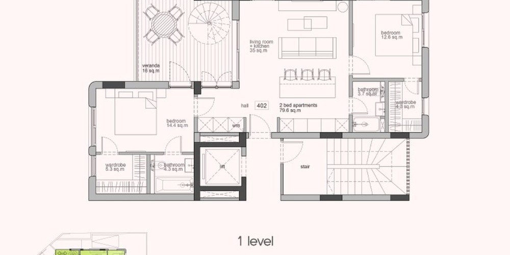 The development consists of 1 and 2 bedroom apartments, all built with quality materials and contemporary design in all common areas. The apartments, starting from the 2nd floor, will have sea views, each apartment will be assigned a storage room as well as the parking space.