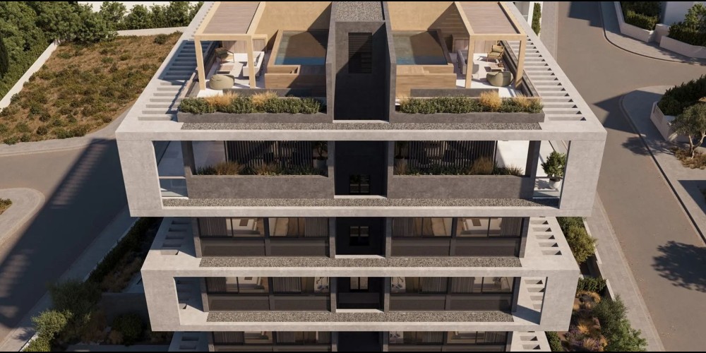 Located in Limassol's vibrant tourist hub, just 850 meters from Dasoudi Beach, this eco-friendly building features 14 apartments including 2 three bedroom penthouses on the fourth floor. Enjoy open floor plans, spacious verandas and exclusive rooftop gardens with private pools.