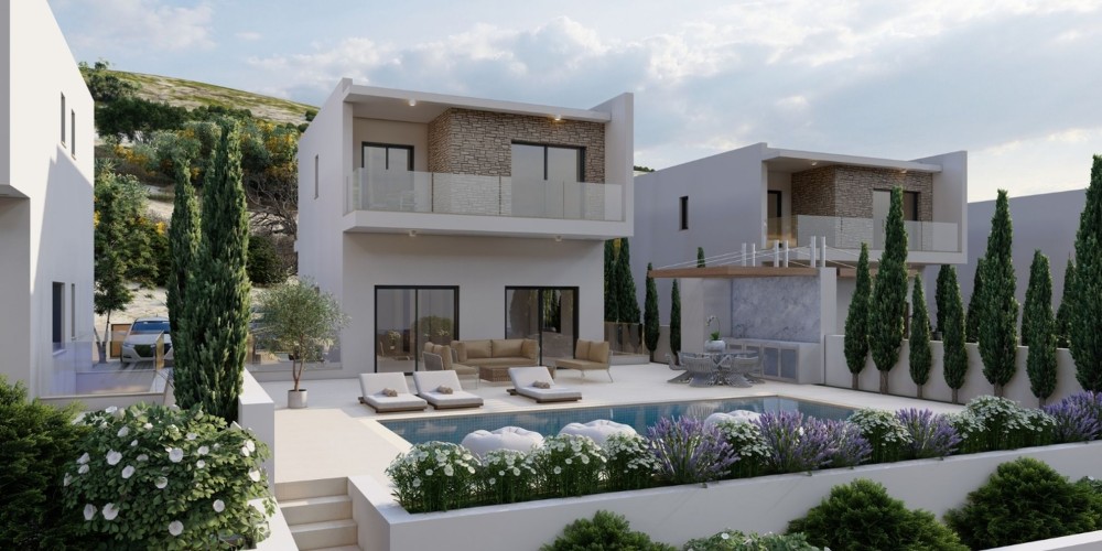 This complex of 5 bedroom villas, located on the hills of a picturesque Peyia village, offers its residents beautiful panoramic views. Each villa will be set on a spacious plot, will have a private swimming pool. Also, each villa will have basement floor and covered verandas.