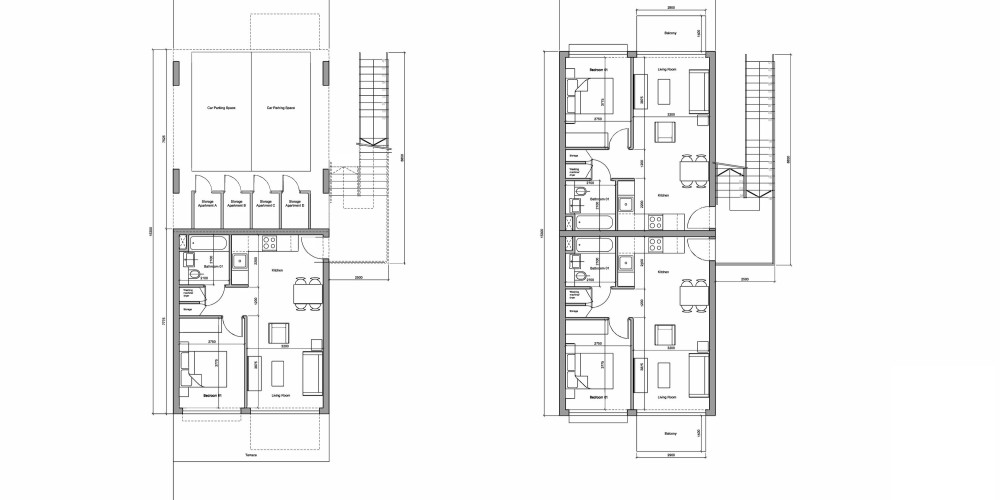 Each block features parking and storage for each apartment. The ground floor apartments benefit from large verandas and private gardens.