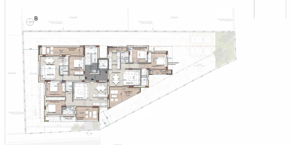 This development with 1 and 2 bedroom apartments is located in Panthea area, in Limassol, above the highway. All apartments are spacious and of modern design; will have covered verandas and will be allocated a storage room as well as the parking space.
