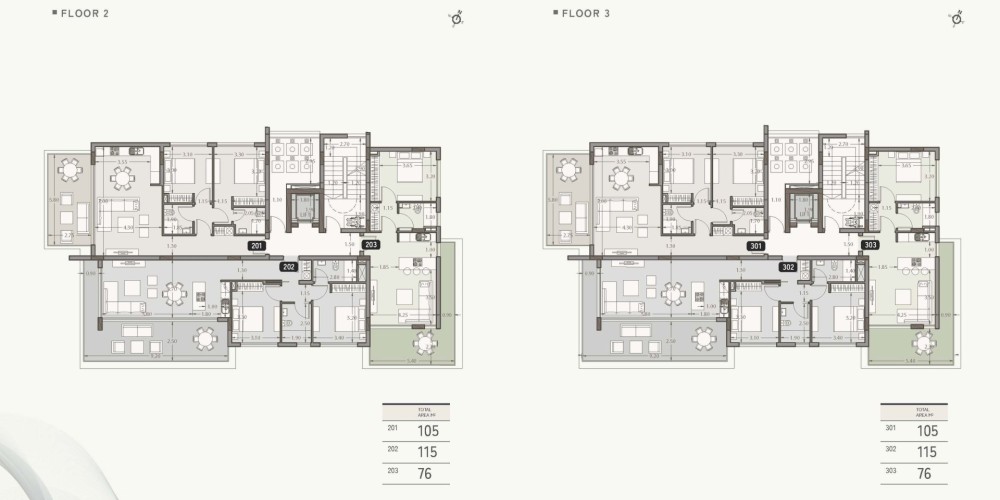 All homes feature high ceilings, water-based underfloor heating and advanced VRV air-conditioning systems. Each apartment comes with private parking and a dedicated storage room. The penthouses elevate the experience even further with rooftop terraces, private pools and breathtaking views of the city and the sea.