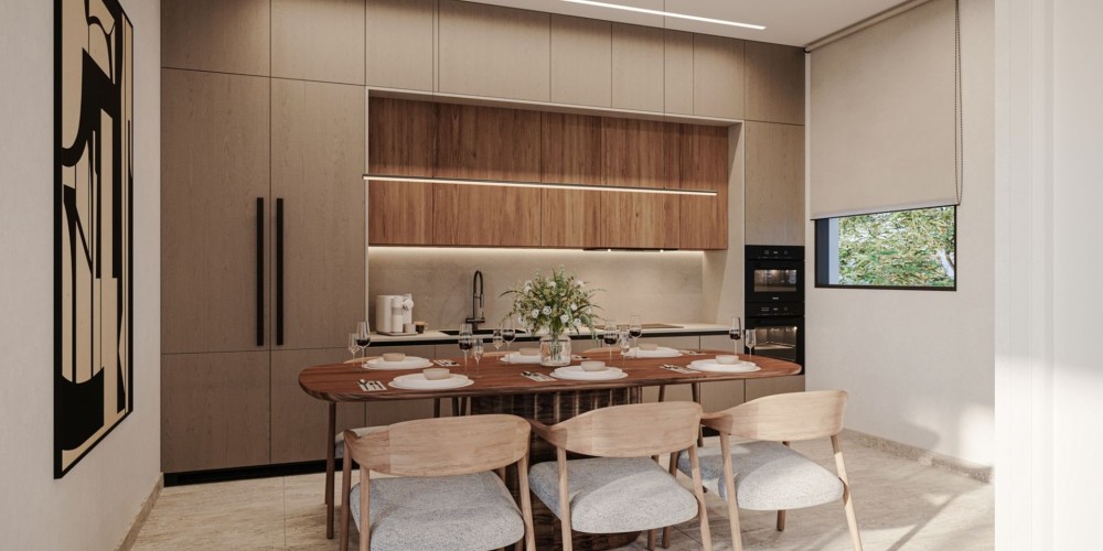 These homes feature open-plan layouts, large panoramic windows and sun-filled interiors.