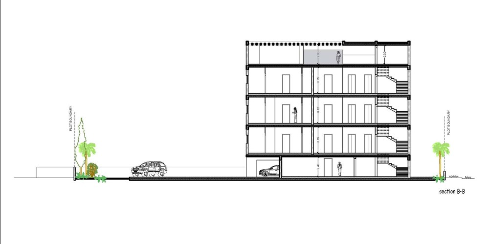 Half of each floor is an office space with a covered veranda, including spacious, fully equipped conference rooms.